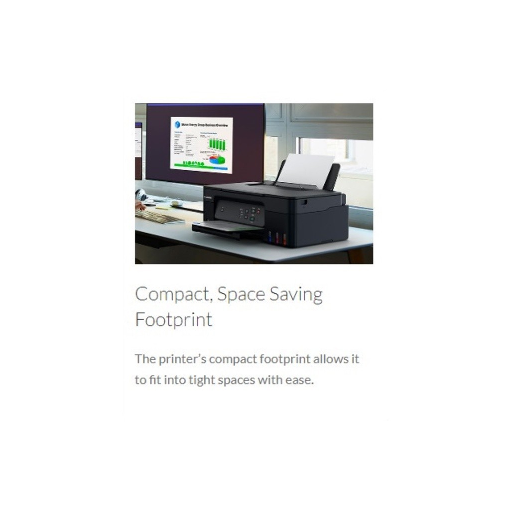 4.Compact, Space Saving Footprint, The printer’s compact footprint allows it to fit into tight spaces with ease.